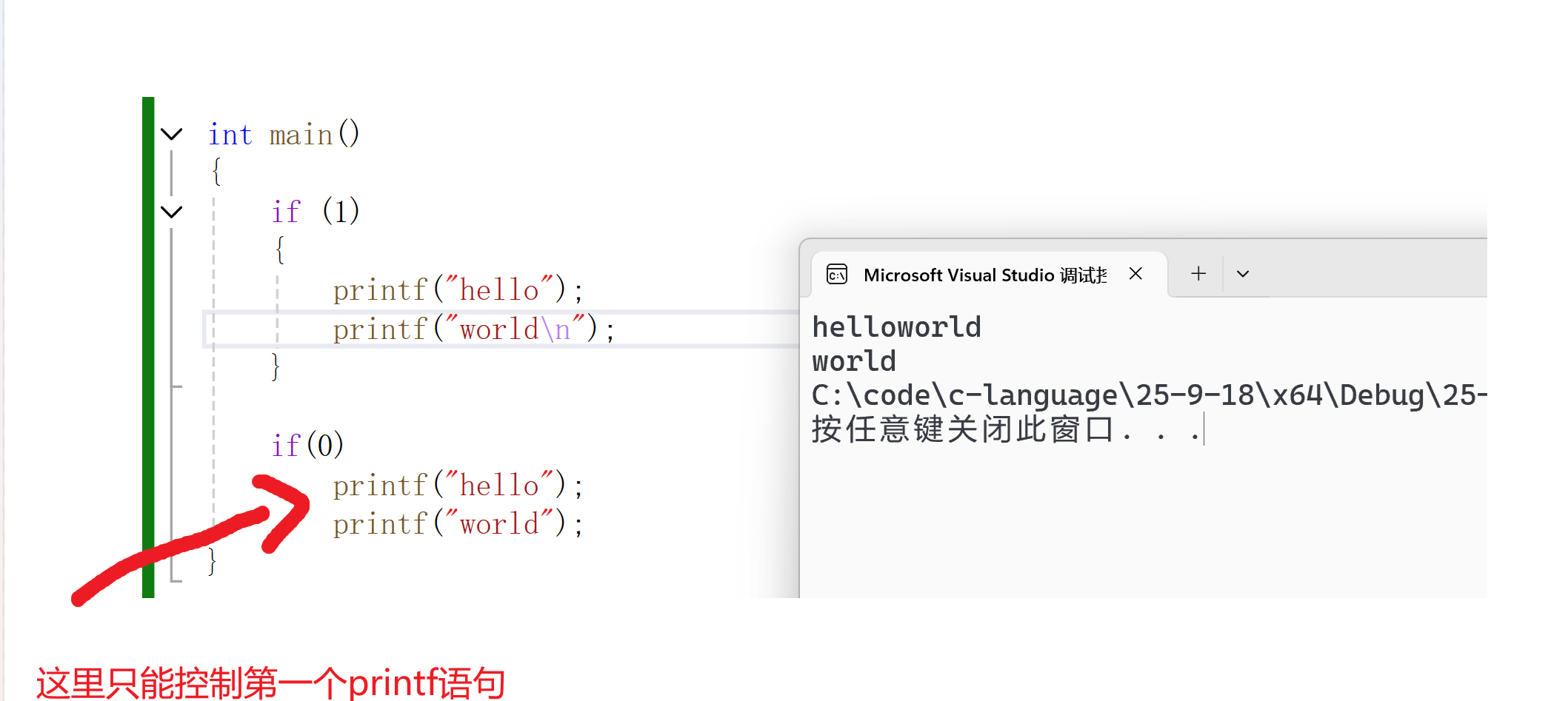 表达式为真(表达式成立),语句执行;表达式为假(表达式不成立),则语句不执行。