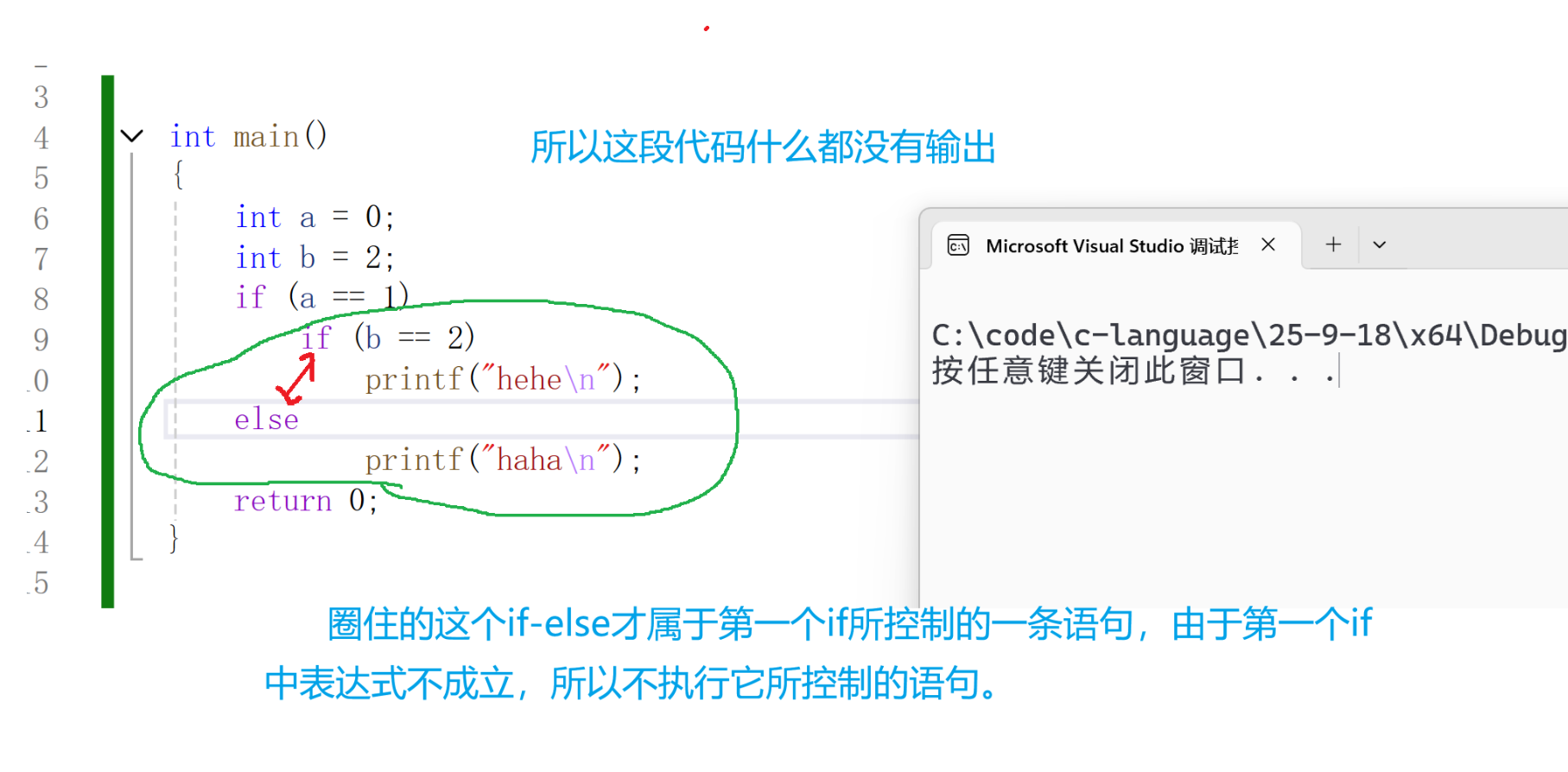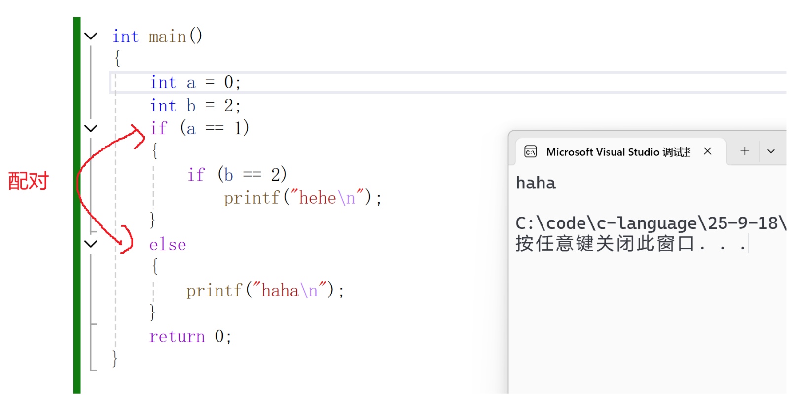 2. else 总是与它前面最近的且未配对的 if 进行配对。