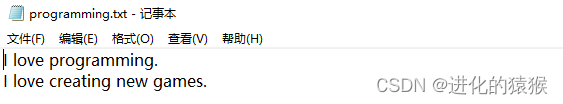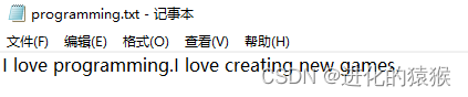 且由上面结果可知,原有txt文档中的内容 I love programming.被清空,返回当前结果 123