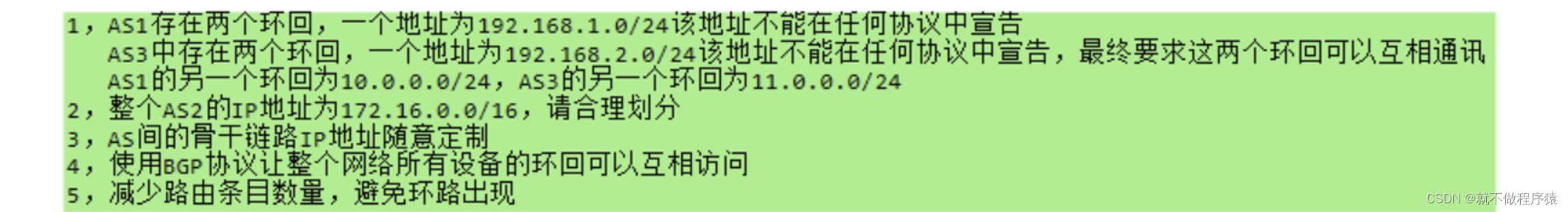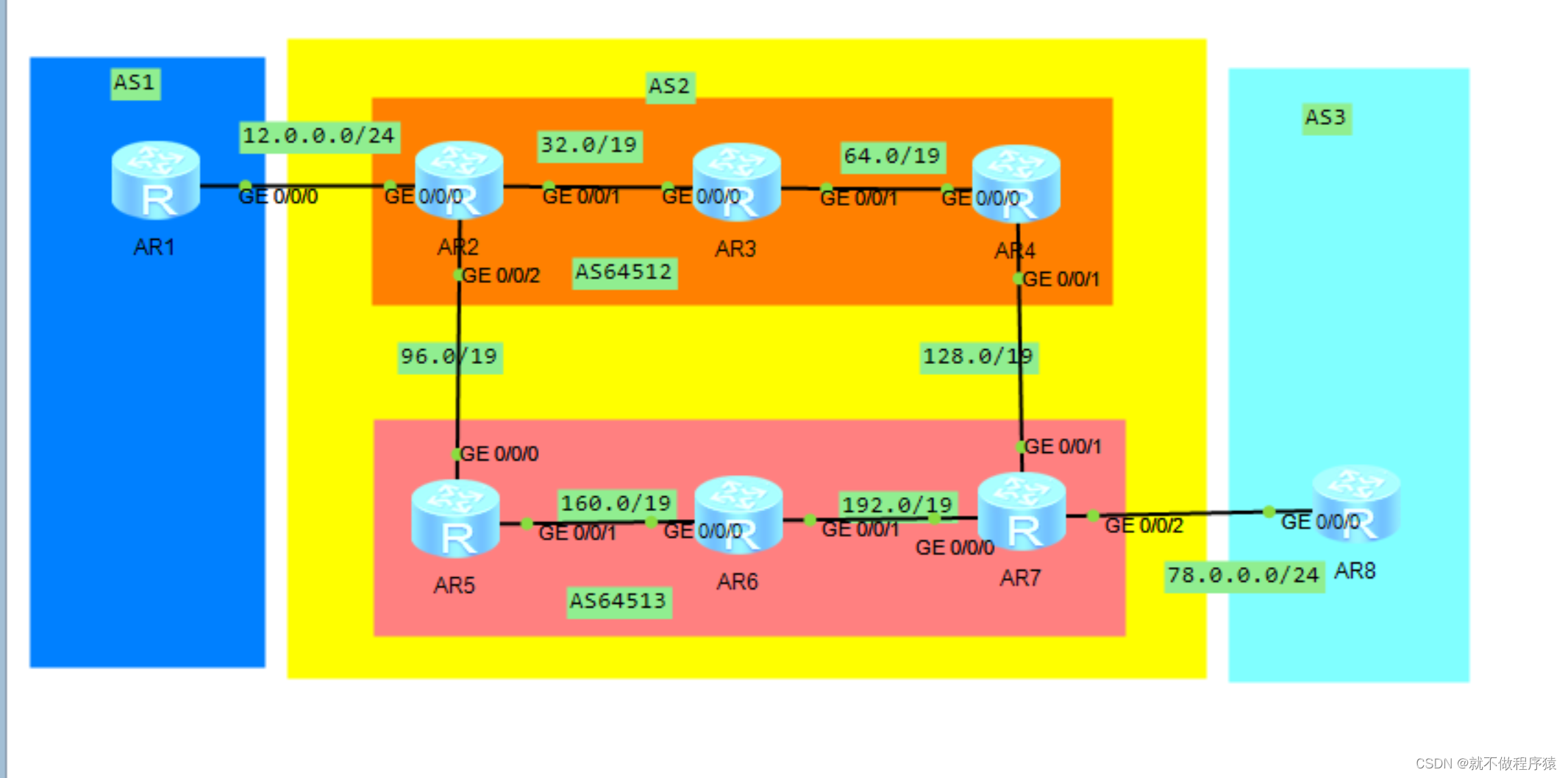 各个接口的地址配置和AS2中OSPF的启用省略,网段划分如图所示