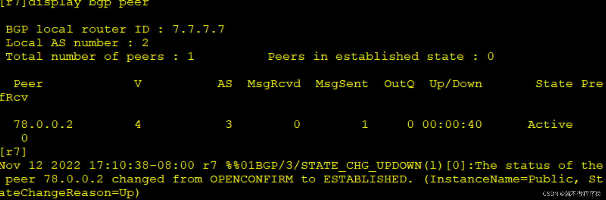 Nov 12 2022 17:35:06-08:00 r3 %%01BGP/3/STATE_CHG_UPDOWN(l)[1]:The status of the