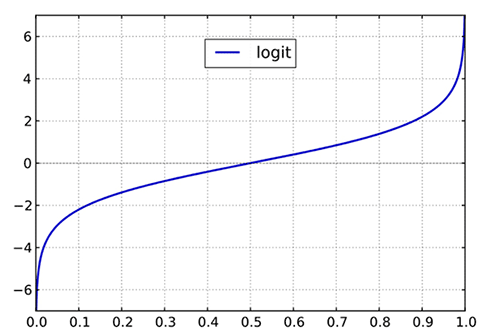 上面实际上就是所谓 logit 变换,其曲线如图 1 所示。