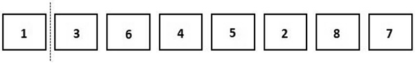 3) 如图 6 所示,这时候,数组中的第一个位置就成了有序数组的一部分。