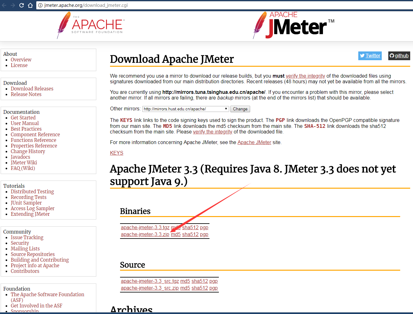 登录 http://jmeter.apache.org/download_jmeter.cgi ,根据自己平台,下载对应文件