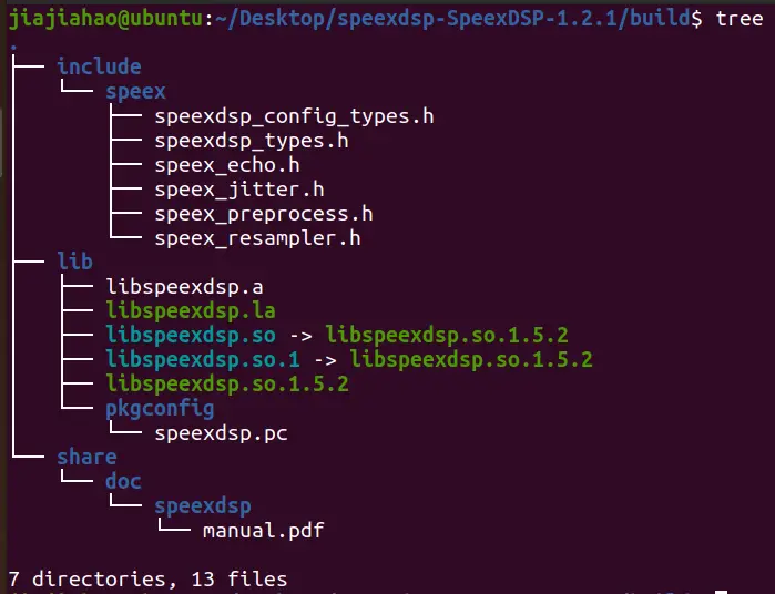 ├── libspeexdsp.so.1.5.2 /*动态库*/
