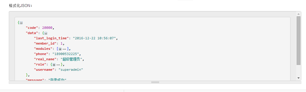 ok,现在还是以上面我们登录的接口为例子开始我们的方法调用,返回的数据格式如图所示