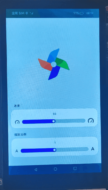 本篇Codelab主要介绍slider滑动条组件的使用。如图所示拖动对应滑动条调节风车的旋转速度以及缩放比例。
