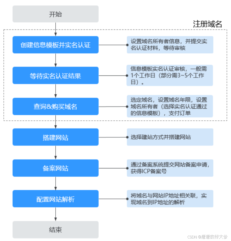 域名申请. Internet上有成千上万台主机,每一台主机都对应一个唯一的IP地址。IP地址因不具备实际意义,非常难于记忆,于是就产生了域名。域名(Domain Name)是一串用点分隔的字符串组成的名称(例如huaweicloud.com),用于在Internet上标识一组服务器(网站、电子邮件、Web应用等)的地址。域名的“域名所有者类型”包括“个人”或者“企业”。当域名应用于部署在中国大陆节点的网站时,需要进行备案审核。