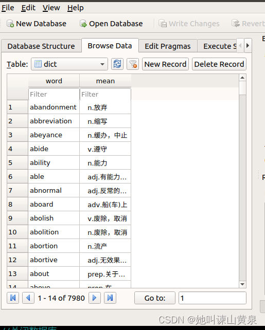 char* sql="create table if not exists dict(word char primary key,mean char)";
