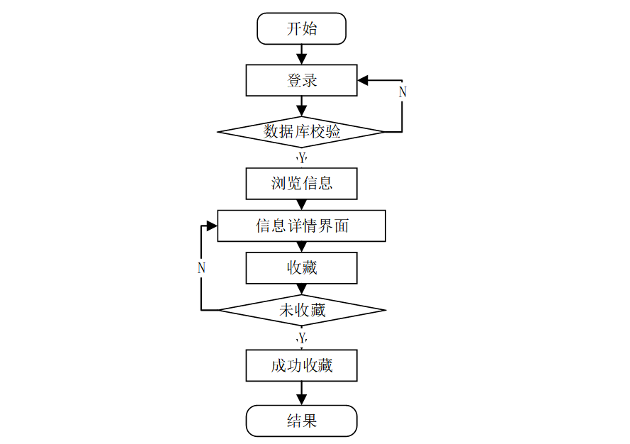 在服装商城系统中,用户登录后,浏览服装商城系统信息详情界面能进行信息收藏,用户收藏信息的流程图如图3-5所示: