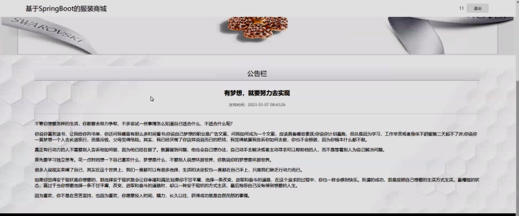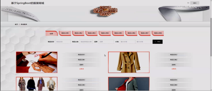 商品展示与搜索:系统提供丰富的服装商品展示,并支持用户通过关键词搜索商品,方便用户快速找到心仪的商品。