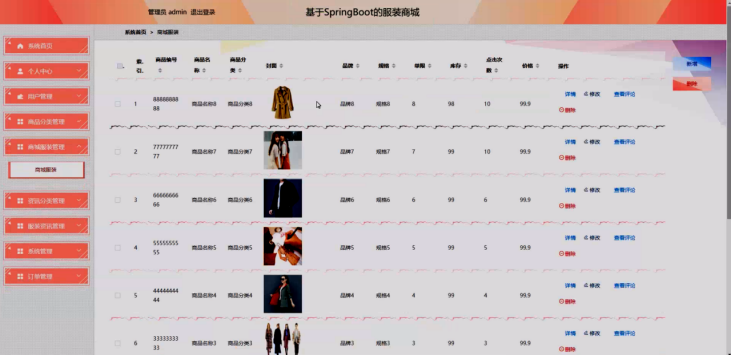 图5-11商城服装管理界面