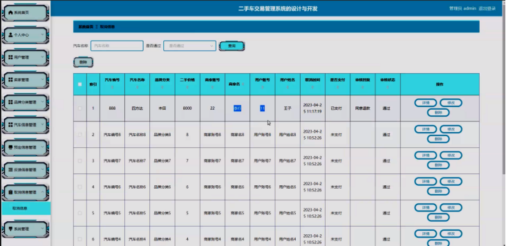 后台管理人员需要对整个二手车交易管理系统的前后台进行把控,管理平台上所有信息。