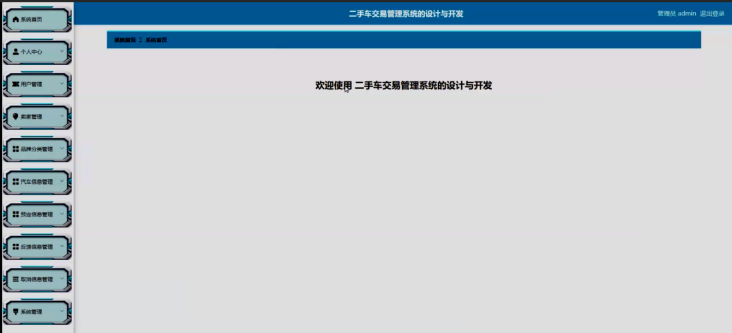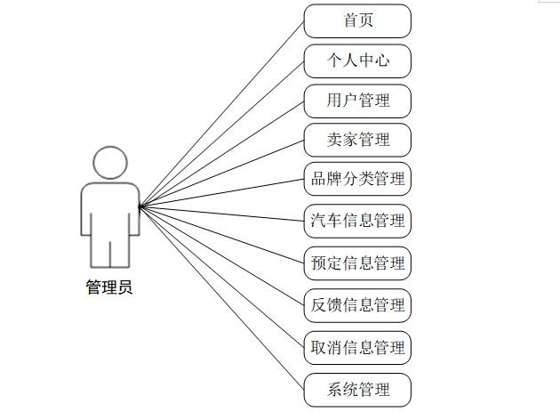 管理员在系统中监管系统信息,对个人中心、用户管理、卖家管理、品牌分类管理、汽车信息管理、预定信息管理、反馈信息管理、取消信息管理、系统管理功能模块进行管理。
