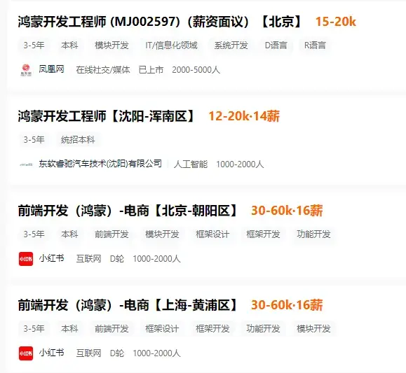 据智联招聘的最新数据显示:鸿蒙开发岗位需求数同比增长了163%,是23年同期的2.6倍,而23年9-12月鸿蒙开发岗位需求数同比增长才33.8%,可以看出2024年确实是鸿蒙关键之年,鸿蒙相关业务量巨大,并且极度缺人才!