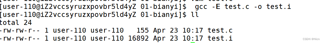 预处理 选项 gcc -E test.c -o test.i预处理完成之后就停下来,预处理之后产生的结果都放在test.i文件中。