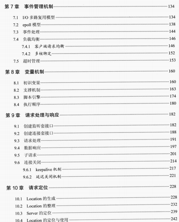 第七部分:与事件相关的实现将在本章介绍,包括I/O多路复用模型,I/O读写事件、超时事件等。另外由于Nginx工作进程的主要任务是处理事件,所以各个工作进程之间的负载均衡也一并介绍!