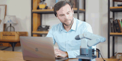 mechArm机械臂配备了6颗高性能伺服舵机,能够实现0.5mm重复定位精度。各个关节间转动平滑,力矩稳定,且响应快,惯量小,使得机械臂可以更精确平稳的完成每次运动和指令。