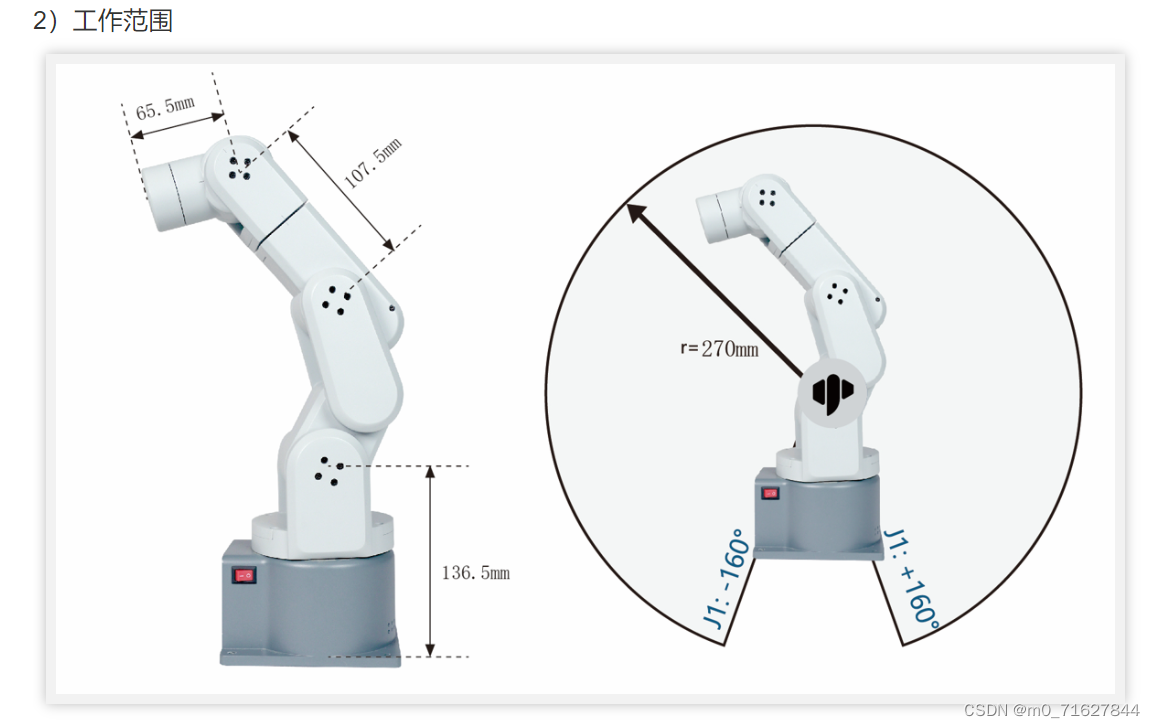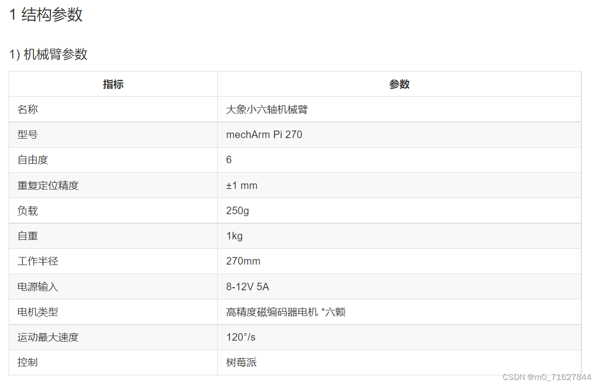 mechArmPi270本体重量1kg, 负载250g,工作半径270mm,设计紧凑便携,小巧但功能强大,操作简单,能与人协同、安全工作。作为大象机器人首款小六轴机械臂,具有易用性、安全性和经济性三大优势,是高性价比之选。