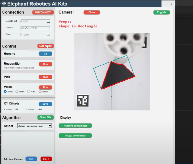 aikit2023是基于Python和OpenCV的入门级人工智能套装,包含形状、特征点、颜色、二维码和YOLOv5识别算法,适用于机械臂的智能分拣。用户可以通过可视化界面操作,支持M5Stack和树莓派平台,提供开源代码,便于学习机器视觉和机械臂控制。