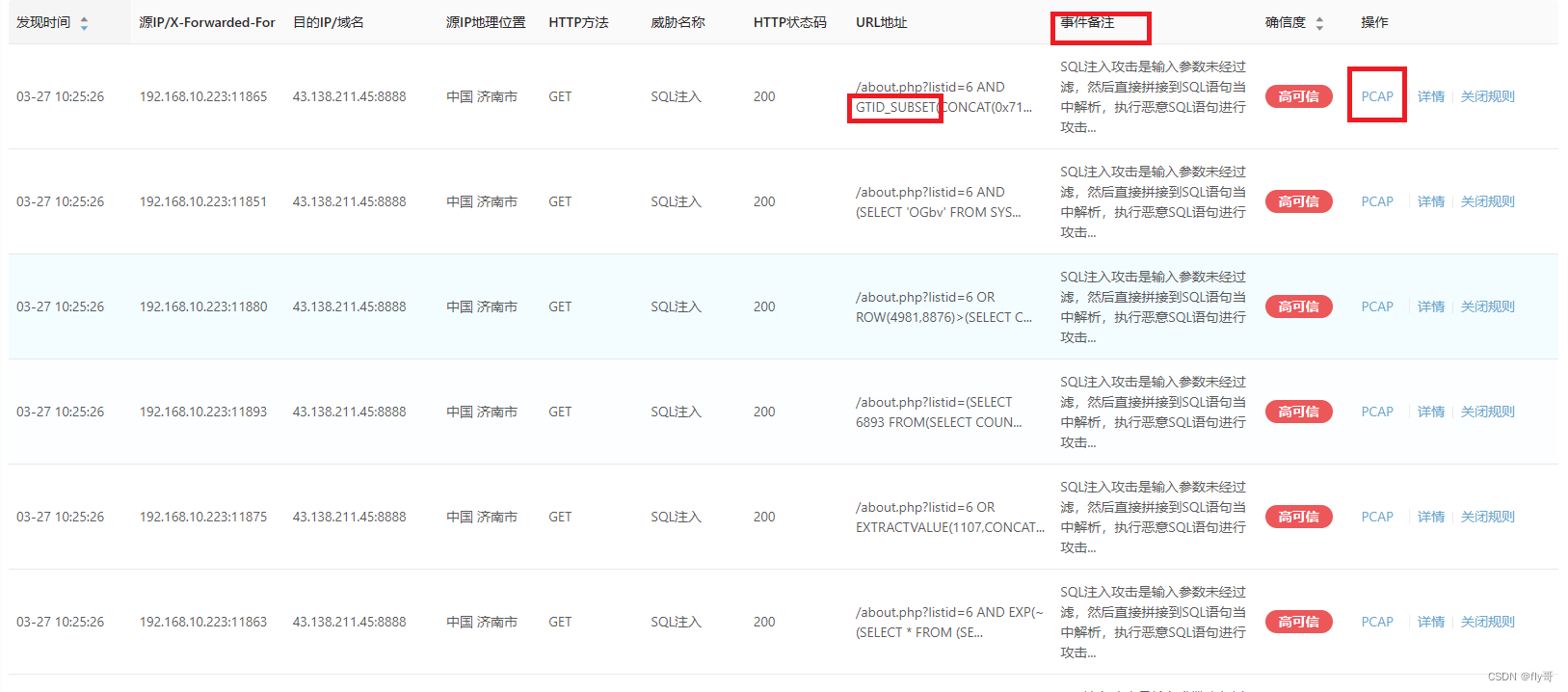 首先观察状态码:200、302、404、500,但是并不是所有200都行,实际上很多200是能执行,但都会被网站过滤掉,不能发挥作用。然后可以查看“事件备注”,可以从中知道操作的作用和效果,接着点开PCAP查看URL和Host以及相关的Cookie、响应包