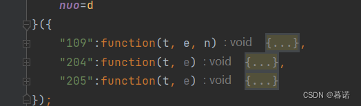 复制好了后,声明一下window=global,再自己随便定义一个变量,后面我们要调用这个模块,所有需要一个变量。发现代码里面全是d.什么,说明入口函数是d,,我们在模块末尾把d赋值给自己定义的变量。
