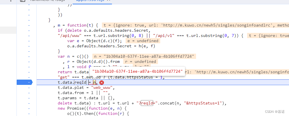 之前凡汐过了,reqId就是等于c,等于c()()那我们直接赋值,把n改成直接定义的变量,然后我们尝试输出reqld。
