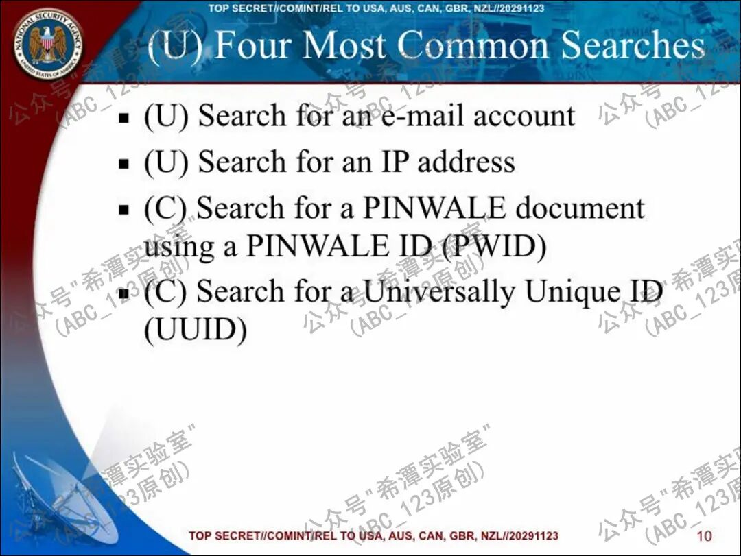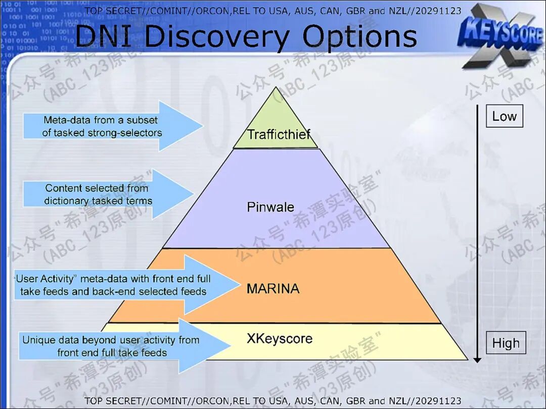 大家好,我是ABC_123。近年来,关于美国国家安全局NSA的全球情报收集与分析体系的报道逐渐增多,其内部庞大的工具链条也不断被外界揭露。此前ABC_123介绍过几款流量情报分析工具,例如XKeyscore全流量分析系统、Marina元数据检索系统、Trafficthief流量分析系统等,这些组件共同支撑了美国NSA强大的全球信号情报SIGINT分析能力。今天继续给大家介绍另一个重要的流量情报分析系统PINWALE,相比前三者,它的公开资料极少,ABC_123经过多方查找,接下来给大家详细讲解一下(文末有技术交流群的加群方式)。