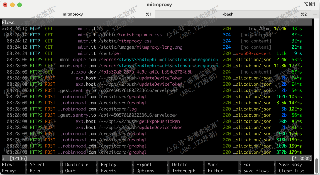 1. 搭建了一台 Linux 服务器并安装了 mitmproxy,这是一款老牌的 HTTPS 拦截工具;