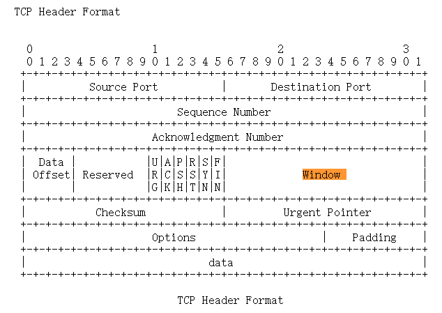 滑动窗口在TCP首部中的位置如下图所示: