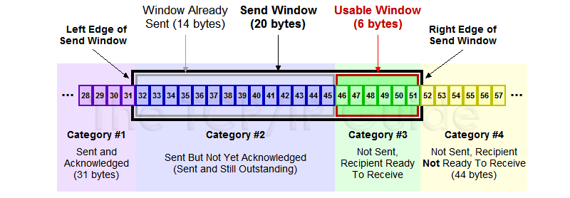 到达出口收费站的车辆。对应的是Sent and Acknowledged。这些数据表示已经发送成功并已经被确认的数据,这些数据已经离开窗口了。