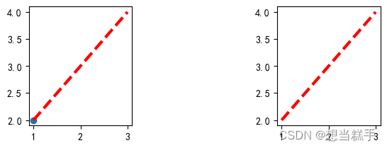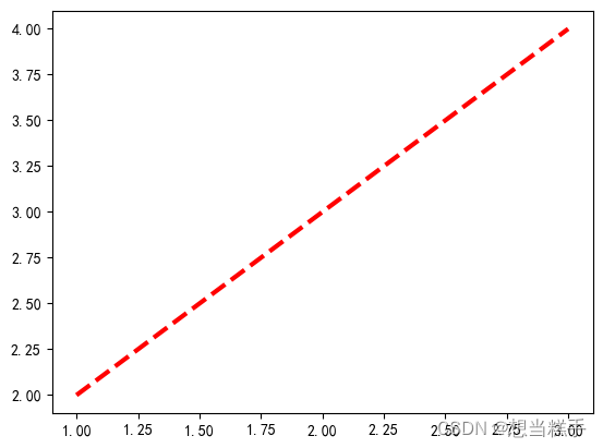 plt.plot((1,1),(2,3),color = 'red',linewidth = 3,linestyle = '--')