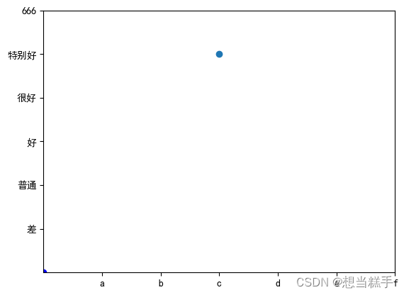 plt.yticks([1,2,3,4,5,6],['差','普通','好','很好','特别好','666'])