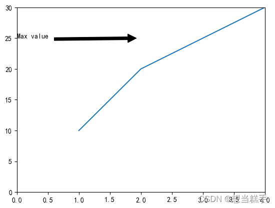 plt.annotate('Max value', xy=(2, 25), xytext=(0, 25),
