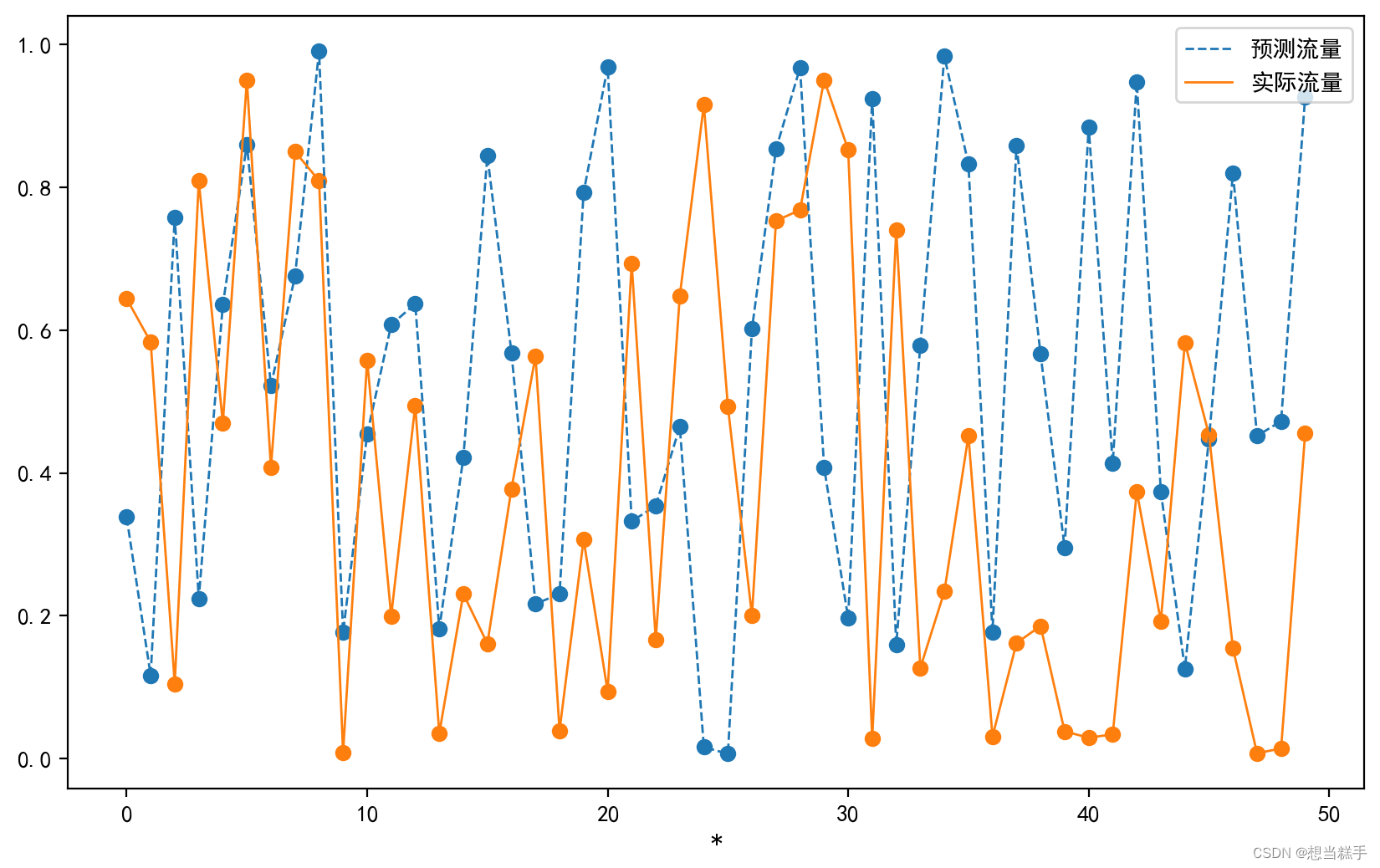 # 生成50个[0, 1)区间内的随机数,代表预测流量