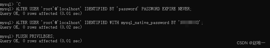 ALTER USER 'root'@'localhost' IDENTIFIED BY 'password' PASSWORD EXPIRE NEVER; #修改加密规则