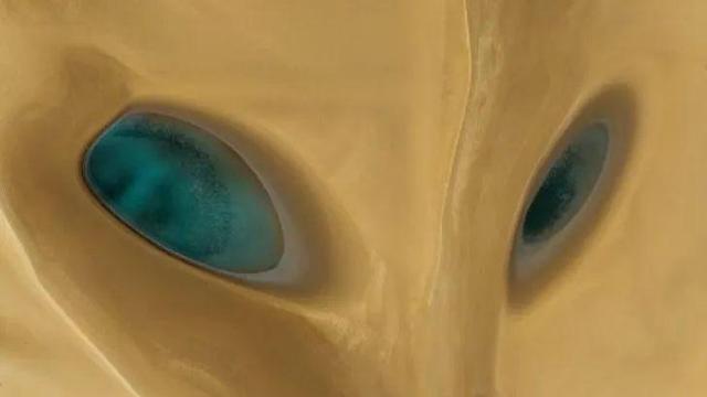 茫茫沙海,无数沙丘,无数水洼,偏偏在这两处水洼,形成了不可思议的画面。