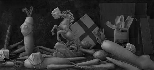 在这里作者采用的是象征的表现手法。画面中的元素都带着口罩。