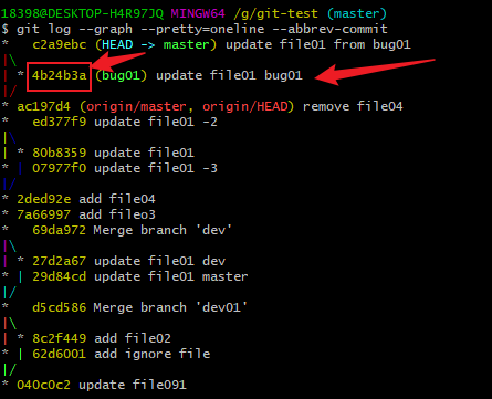 $ git log --pretty=oneline --all --graph --abbrev-commit