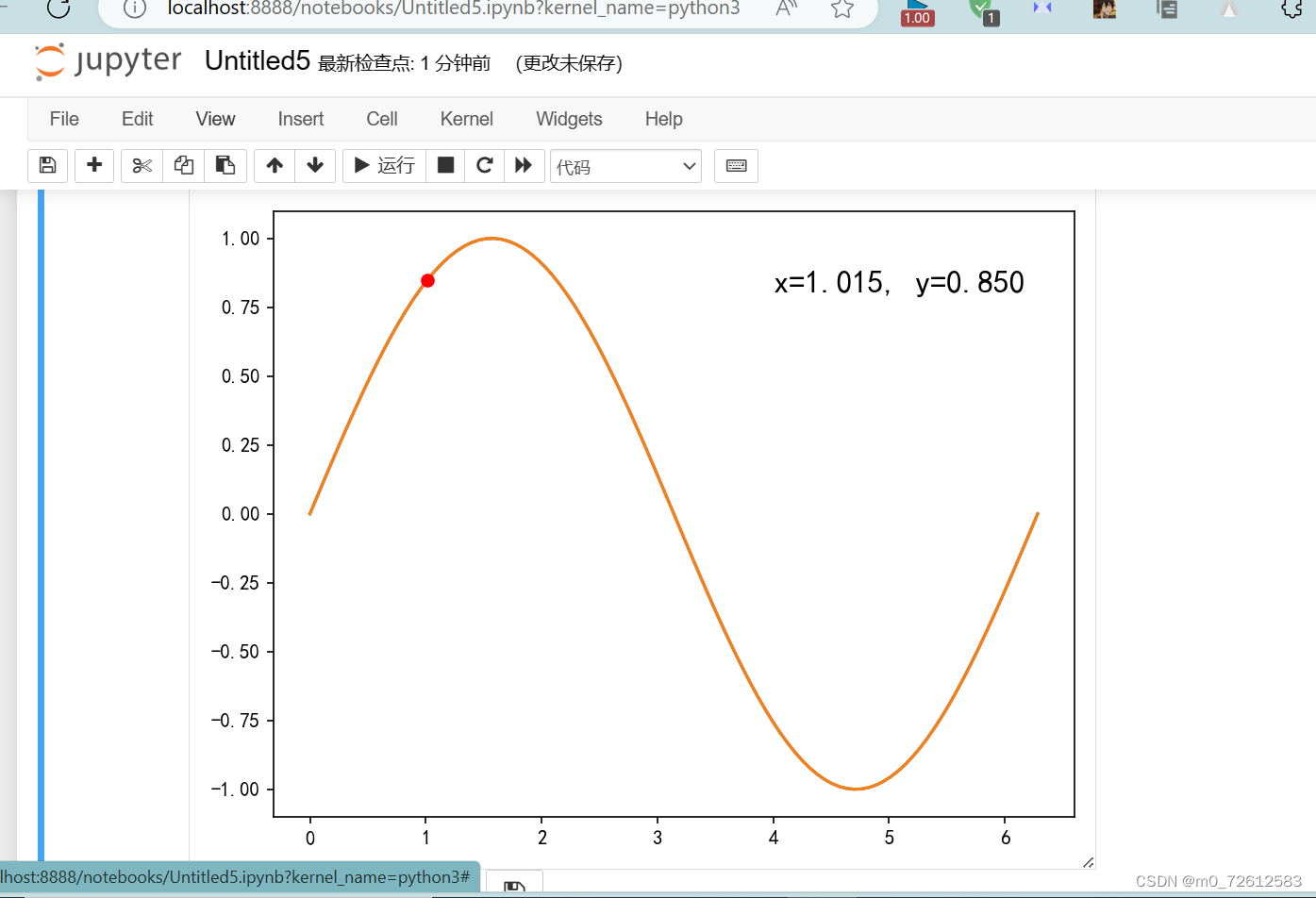 (3) 制作一个圆点沿曲线运动的动画,并时刻显示圆点的坐标位置。(2) 绘制一个红色圆点,该圆点最初位于正弦曲线的左端;3 完成第一个要求——准备正弦数据。(1) 绘制一条正弦曲线;6.创建红色小圆点,设计动画。7.保存文件格式并运行结果。