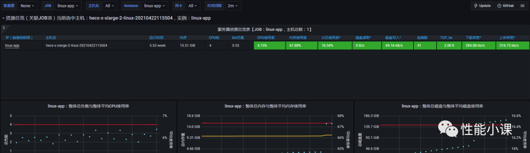 再来看一下操作系统的资源消耗情况,如下图,cpu的利用率非常低,接下来进行代码瓶颈定位。
