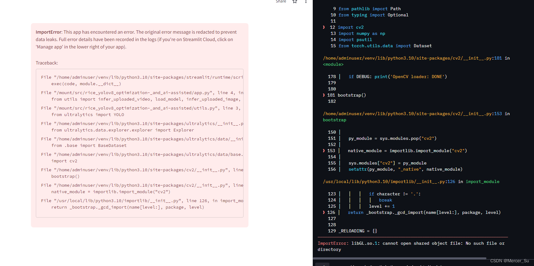 ImportError libGL.so.1: cannot open shared object file: No such file or directory 今天在访问部署到Streamlit Cloud的项目的时,显示报错为 ImportError libGL.so.1: cannot open shared object file: No such file or directory。