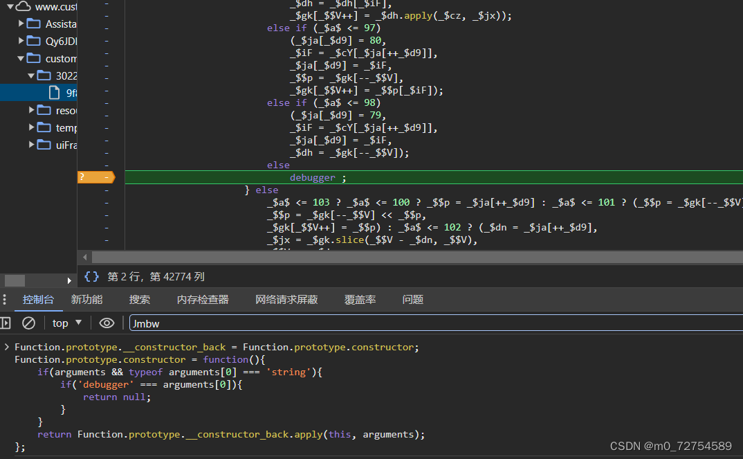 第二次请求返回生成第三次cookie生成的js代码 返回的值是cookie中的__jsl_clearance,用于替换第一次生成的__jsl_clearance,接着携带上面所生成的cookie值进行第三次请求生成瑞数的第一个cookie值,以及返回一个页面源码,该源码中有我们生成最终cookie所需要的参数和js,代码中有指向导入主要js的连接以及content。第一次接口返回cookie数据 和一段js代码 该代码生成的cookie值和第一次返回的cookie数据携带进行第二次请求。