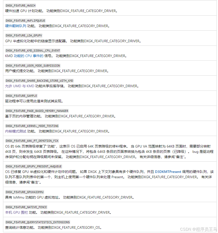 DXGK_FEATURE_ID 枚举值标识 WDDM 功能。