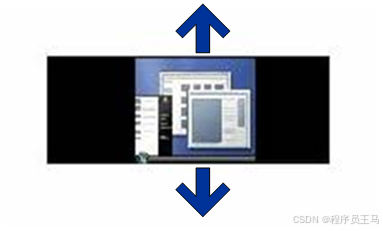 纵横比保留拉伸缩放是一种模式,在保持纵横比的同时,尽可能水平和垂直拉伸桌面。 当 SetDisplayConfig 应用纵横比保留拉伸缩放时,黑色带可能显示在桌面的 上方和下方 或 左右 。 但是,黑色带不能同时在桌面 的上方和下方 以及 左右 可见。 由于用户应首选此类型的缩放, 因此 SetDisplayConfig 会将此类型的缩放应用为默认值。 下图显示了保持纵横比的拉伸缩放。