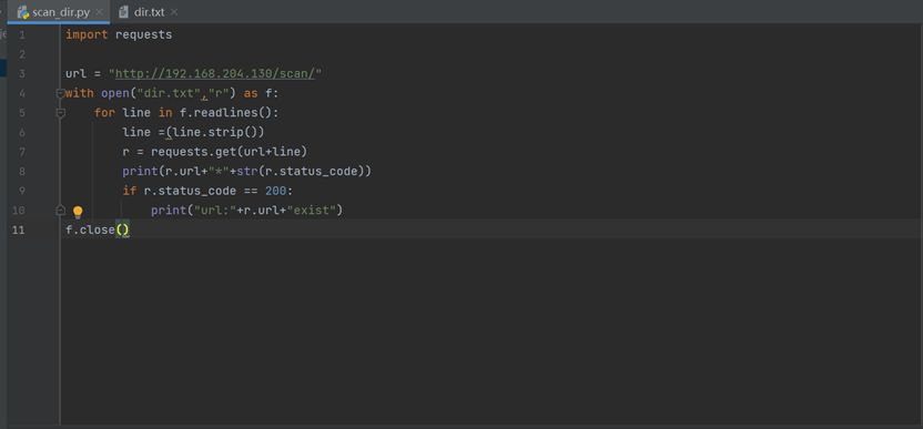 脚本逐行读取dir.txt中的目录名,拼接成完整 URL 发送请求。