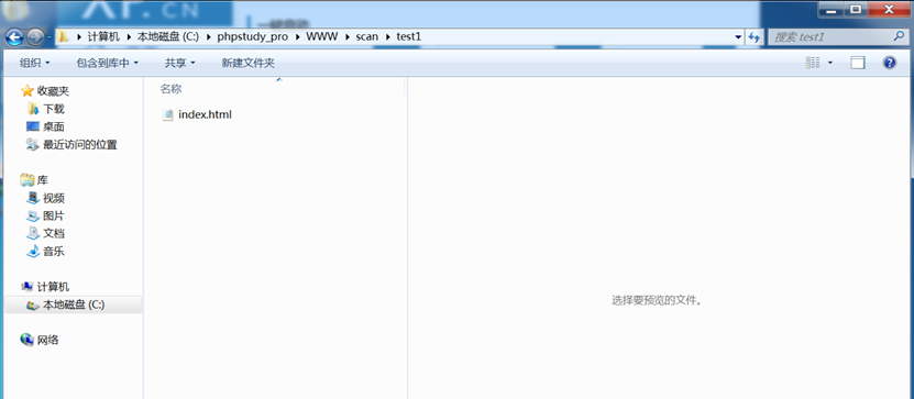 在C:\phpstudy_pro\WWW下创建scan目录,并在其中创建test124文件夹及index.html文件。