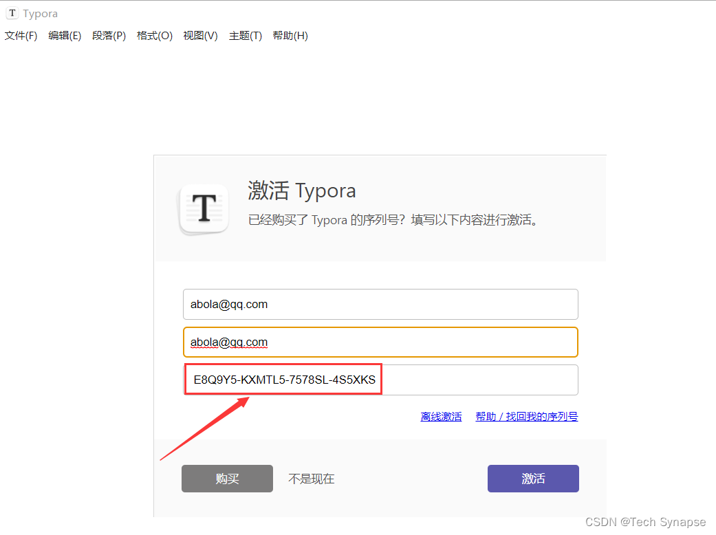 未激活Typora窗口中会弹出激活窗口,点击“输入序列号”。。