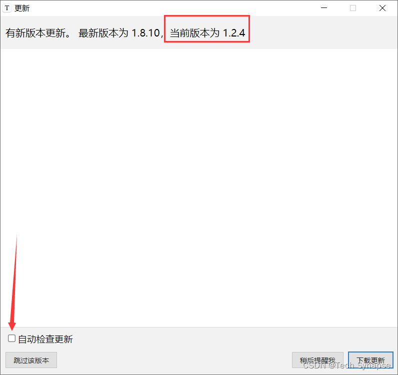 双击打开之后可能会弹出“更新版本”窗口,取消“自动检查更新”,如下图所示进行勾选。