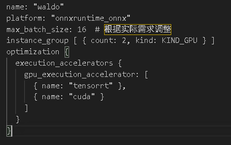 5.加速策略:execution_accelerators → 用 TensorRT 和 CUDA 优化推理性能。